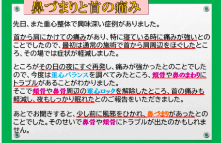 それが重心整体を受けた後、便通が良くなり便秘も良くなりました、とのご報告をいただきました。